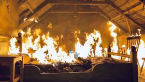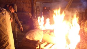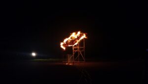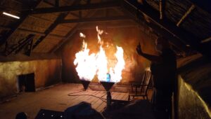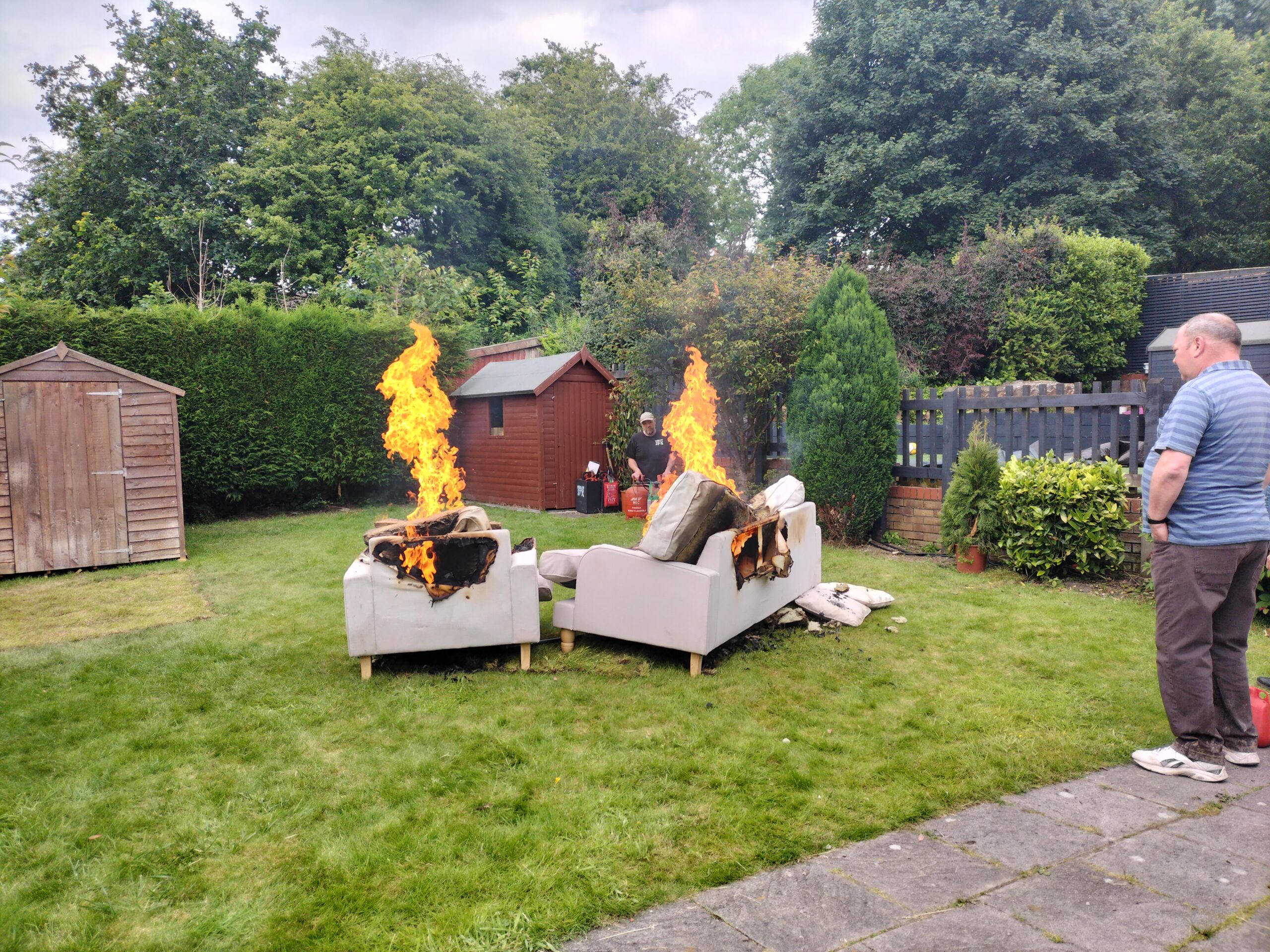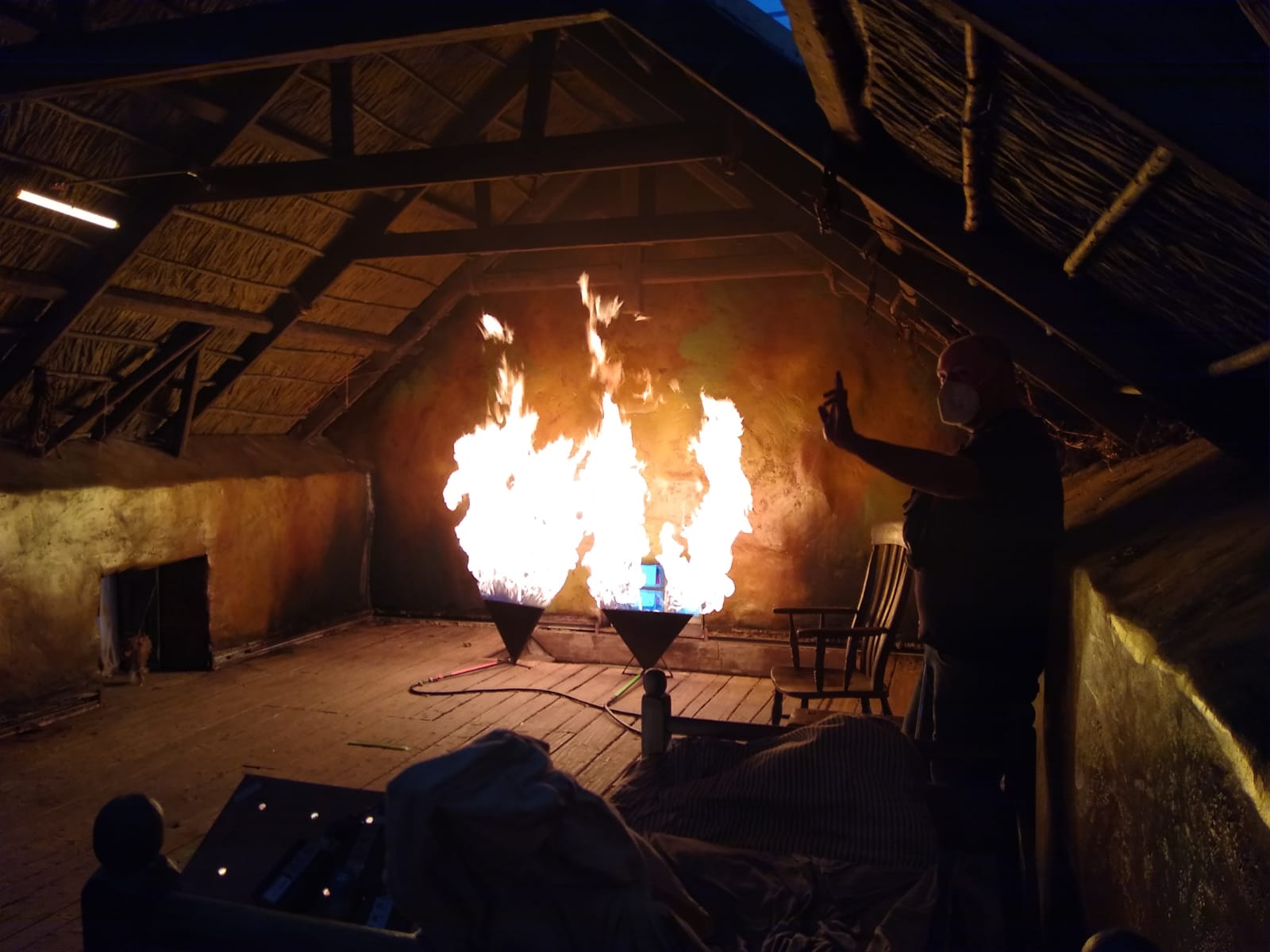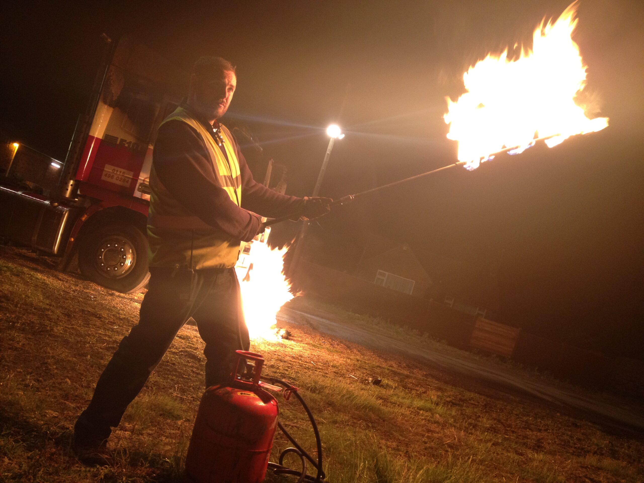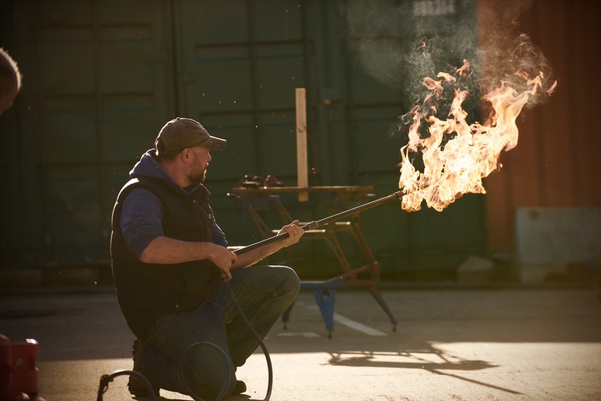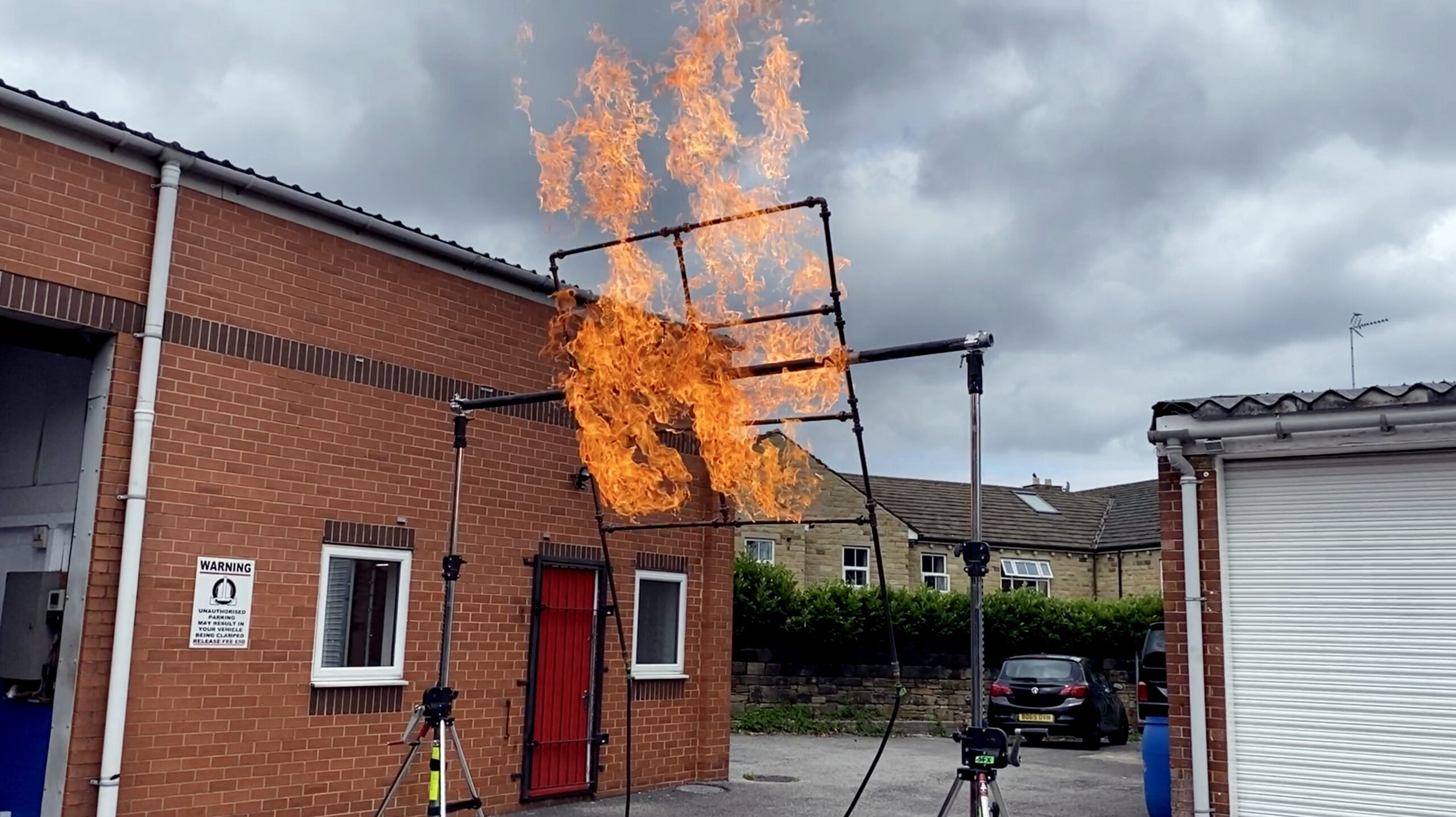 We’ve performed large fires in all kinds of environments where fire control has been key. As such we have perfected a highly reliable method of fireproofing: the procedure ensures flame can be run on the surface of burnable materials such as hay and straw bales with the guarantee that when we shut the gas down, flame will self-extinguish. This preparative treatment provides further peace of mind for all, and total control for us.