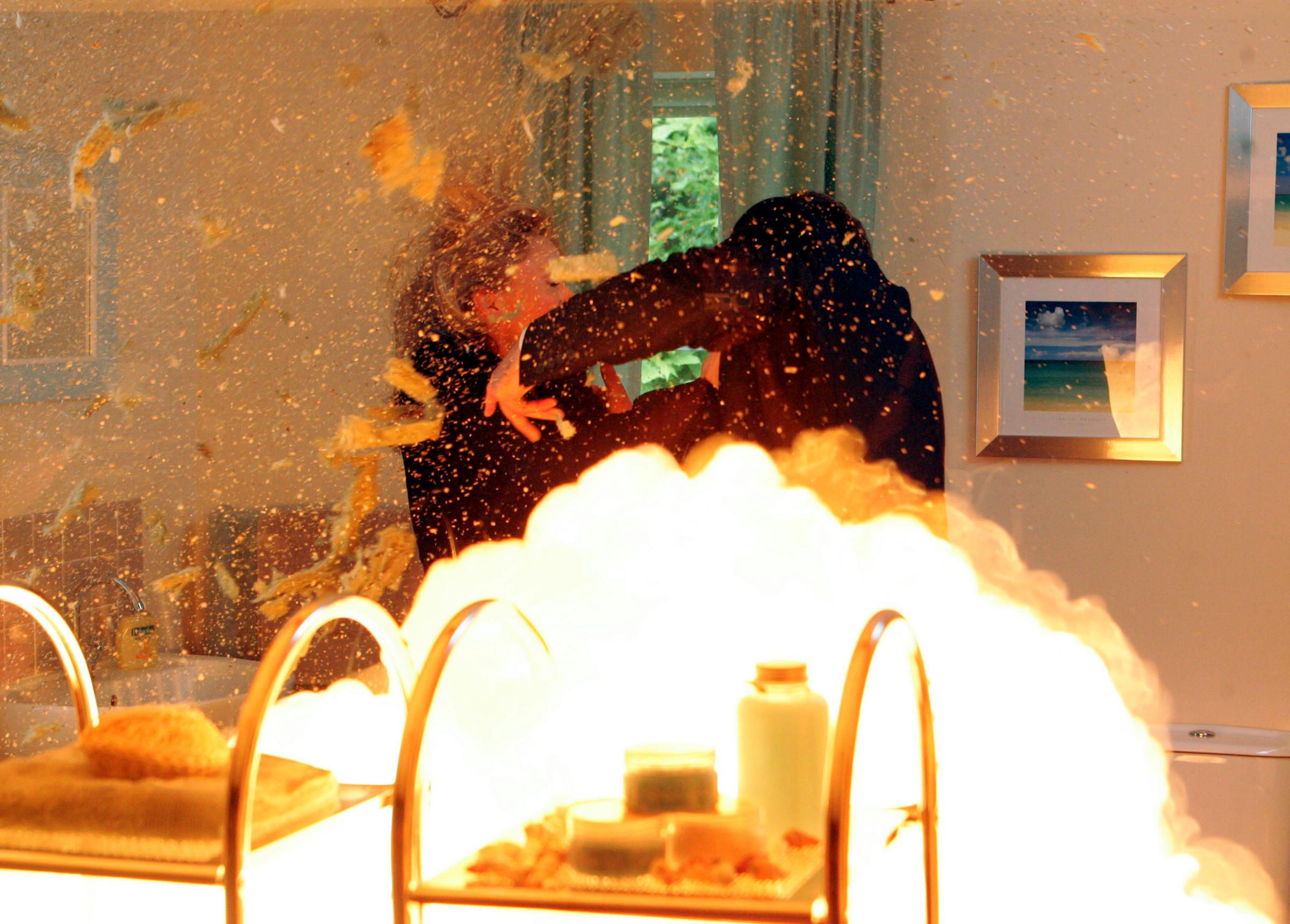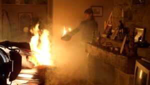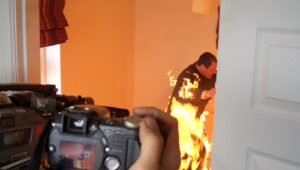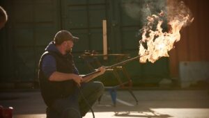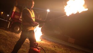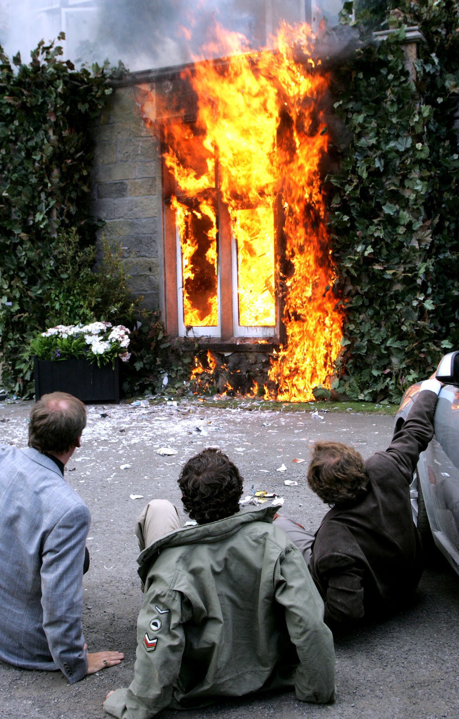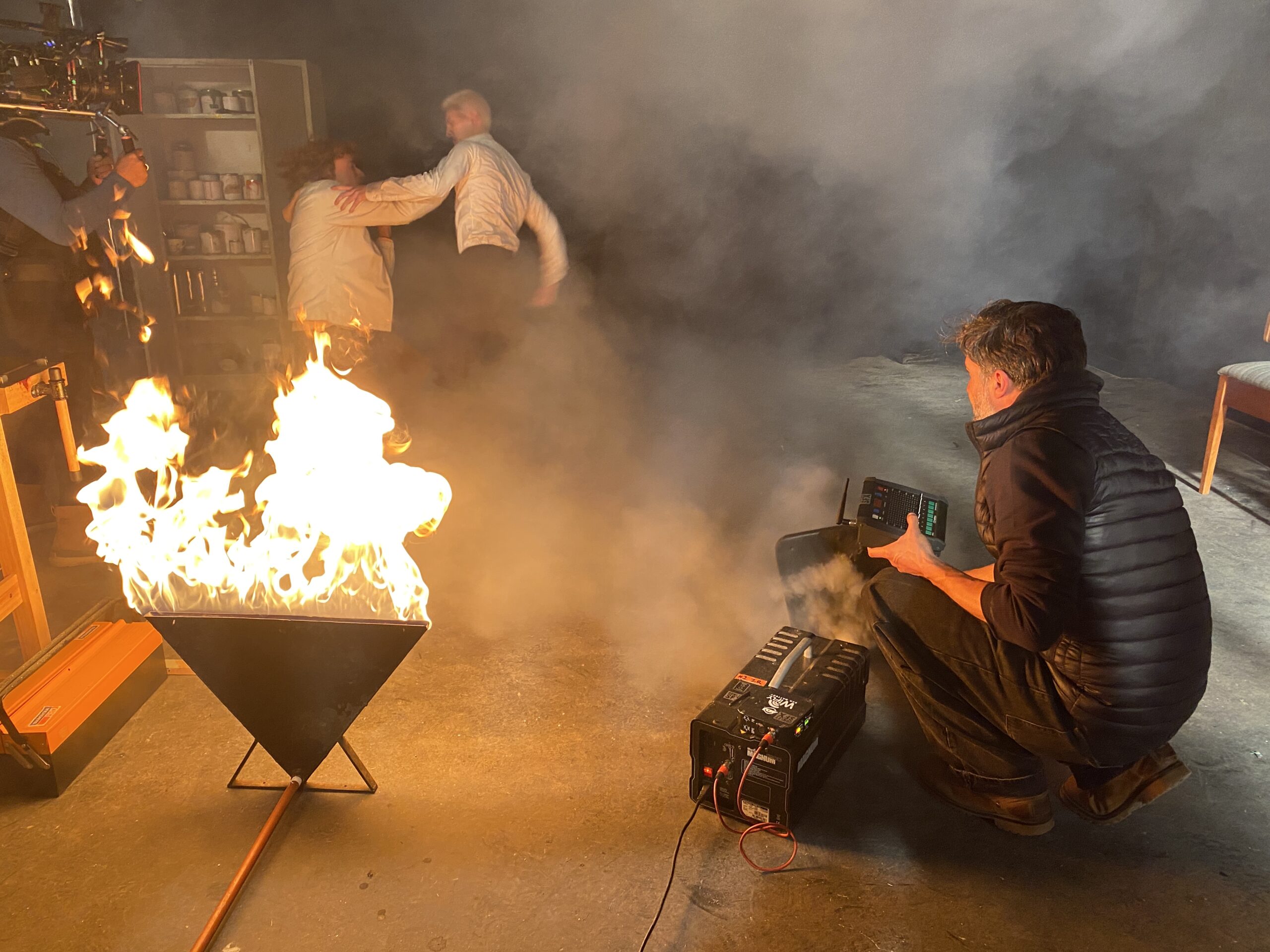 We have also assisted the Stunt Department on over twenty full-body burns to provide fire cover, back up support, gelling up and fire initiation; either by manual flame or remotely triggered fireball from our gas canon.