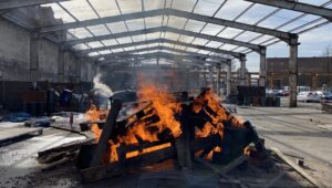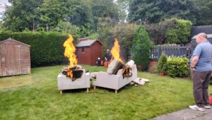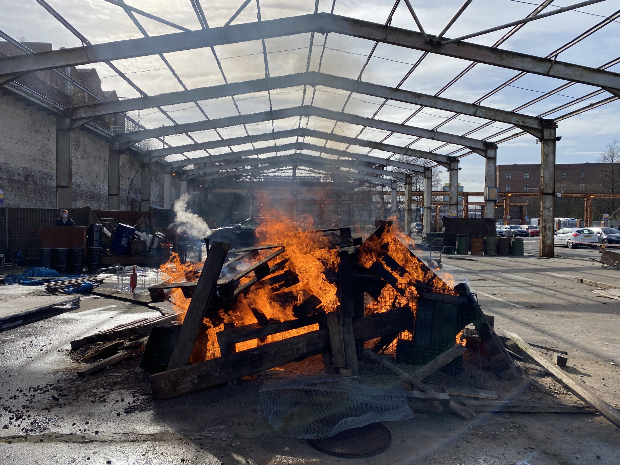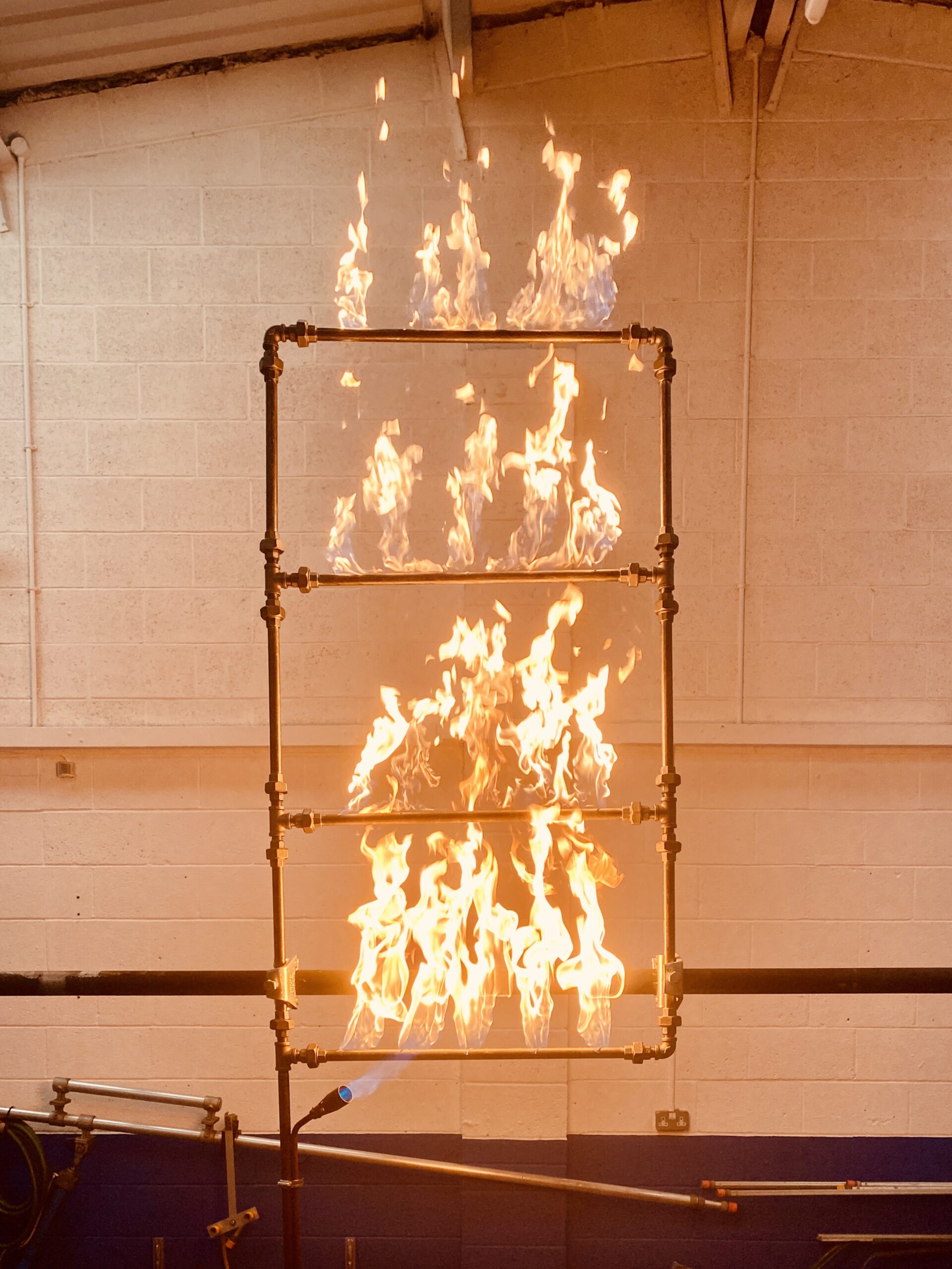 We are always mindful of the working environment and will always design a fire with adequate mechanical extraction when working in a studio or other enclosed space. We’ve also developed a clean burning system that requires no extraction; burning silently and cooler than gas, yet still with a nice coloured flame.