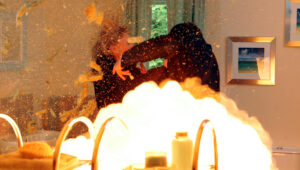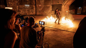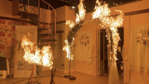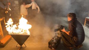 Fire at any level is about control and respect. We use full-bore and/or micro-bore gas systems to simulate fires of any size, in all environments: studio and location. We supervise artists in close proximity to flame; a repeatable flame level will be set that can be shut off instantly with the correct control gear. We have an array of burners for fire work including a gas canon for perfect fire balls and hand-held flame bars and our recently developed Fire Flags, which can be mounted on a cherry picker for reflective or lighting purposes.